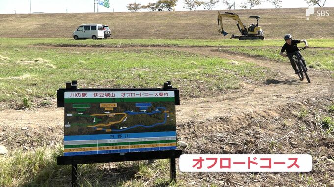 サイクリングを楽しむ人が多い狩野川に、経験者も初心者も楽しめるオフロードコースが作られました。自転車は、近くの道の駅でレンタルすることもでき、気軽に楽しめます。