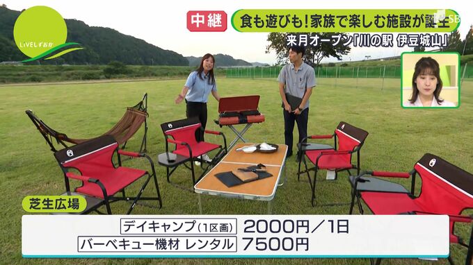 「川の駅」はデイキャンプを楽しむことができます。いまは空前のキャンプブーム。川の駅では、狩野川や城山を眺めながら、バーベキューを楽しむことができます。(デイキャンプは1日2,000円、バーベキュー機材レンタルは7,500円)