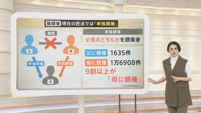 近年「3組に1組が離婚する」という言葉もある中、離婚した後「子どもをどう育てていくのか」が重要視されます。現在の民法では父母いずれかの「単独親権」で、「母に親権」が渡るケースが9割以上です。離婚後の父親と母親が、子どもの親権を共同で持つ「共同親権」を日本でも導入するかについて、法務省の専門家会議が具体的な制度の議論を進めていることが分かりました。親権をめぐる課題や今後の議論について見ていきます。
