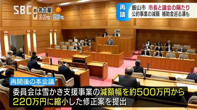 再開された本会議で委員会から提案されたのは、「雪かき支援事業」の減額幅をおよそ500万円から220万円に縮小した修正案です。