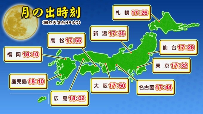 ■2023年9月29日中秋の名月 全国主要都市の「月の出時刻」
