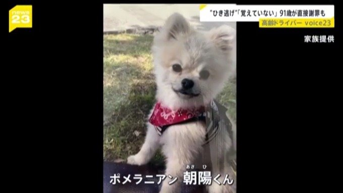 現場は信号のある横断歩道で、車が赤信号を無視したとみられています。車は飼い犬だけをはね、そのまま逃げました。犬の朝陽くん、はねられた1時間後に死にました。