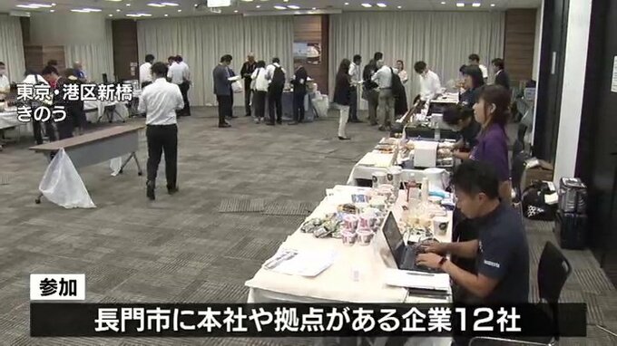 港区新橋の会場には長門市に本社や拠点がある企業12社が集まりました。