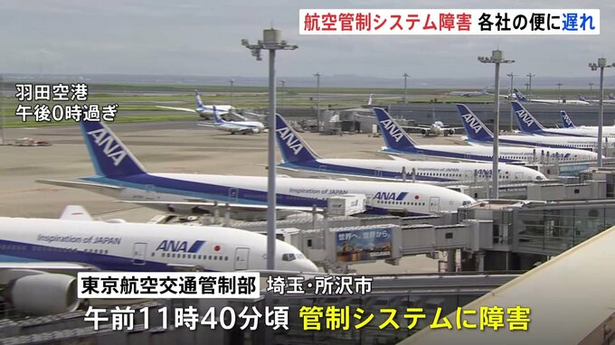 きょう正午前、東京航空交通管制部でシステム障害が起き、各地の空港から東日本に向かう航空各社の便に現在も遅れが発生しています。国土交通省によりますと、午前11時40分頃、埼玉県所沢市にある東京航空交通管制…
