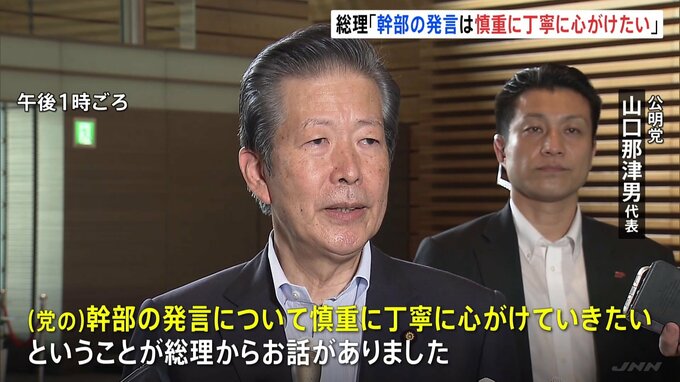 岸田総理は先ほど、公明党の山口代表と会談し、「党の幹部の発言について慎重に丁寧に心がけていきたい」と伝えました。自民党の麻生副総裁が安全保障関連3文書の改定をめぐり公明党幹部が“がん”だったと批判し…