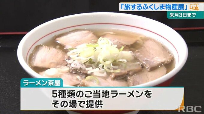 那覇市のデパートリウボウに設けられた特設会場には桃やぶどうといった果物をはじめ、太麺が特徴の「なみえ焼そば」などご当地グルメが並ぶほか、出来たての地元・福島のラーメンをその場で味わうことができます。