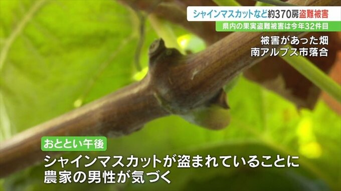 山梨県南アルプス市の畑で、シャインマスカットなどブドウ約370房が盗まれる被害がありました。