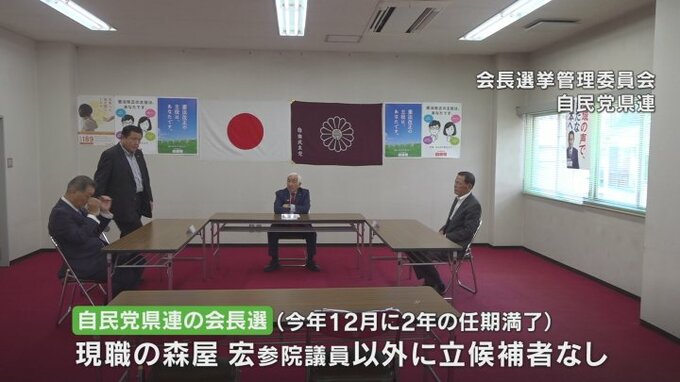 今年12月に2年間の任期が満了となる自民党県連の会長選挙が29日に告示され、現職の森屋宏さん以外に立候補者はいませんでした。