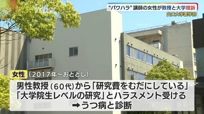 山口大学医学部の講師が、上司の教授から学内でパワハラを受けて精神的な苦痛を与えられたとして、教授や大学に損害賠償を求める訴えを起こしました。