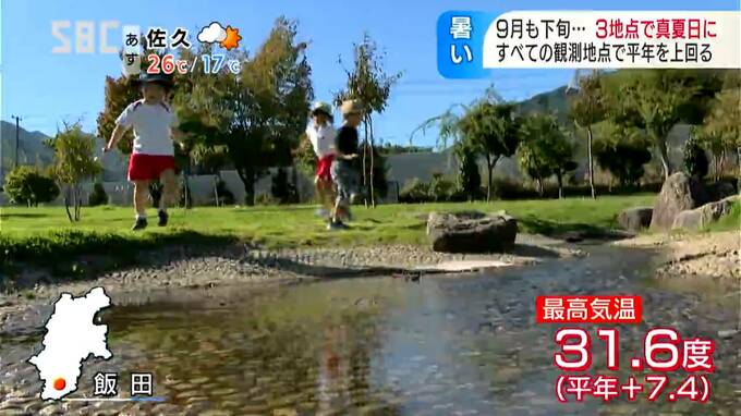 9月も下旬、中秋の名月の29日、飯田市では最高気温が31.6度と平年を7度以上も上回り、真夏日を記録しました。