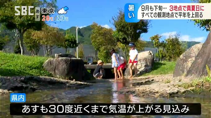 飯田市南信濃で32.9度、伊那で30.8度など3地点で真夏日を記録したほか、上田29.4度、松本28.4度、長野27.5度など、すべての観測地点で最高気温が平年を上回りました。
