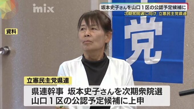 立憲民主党山口県連は、県連幹事の坂本史子さんを山口1区の公認予定候補として党本部に上申しました。