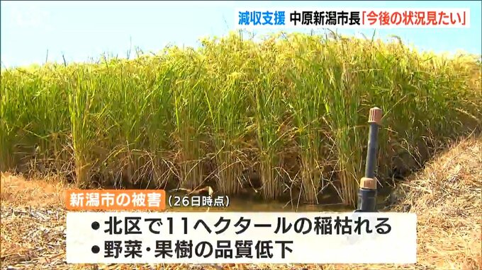 この夏の猛暑と渇水による農作物の被害で生産者の減収が懸念される中、新潟市の中原市長は支援について「今後の状況を見たい」と話しました。