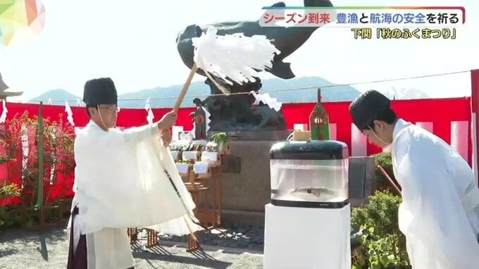 フグのシーズン到来に合わせ、豊漁と航海の安全を祈願する「秋のふくまつり」が山口県下関市でありました。「秋のふくまつり」は、「ふく(29)」の語呂合わせで毎年9月29日に開かれています。亀山八幡宮の境内に…