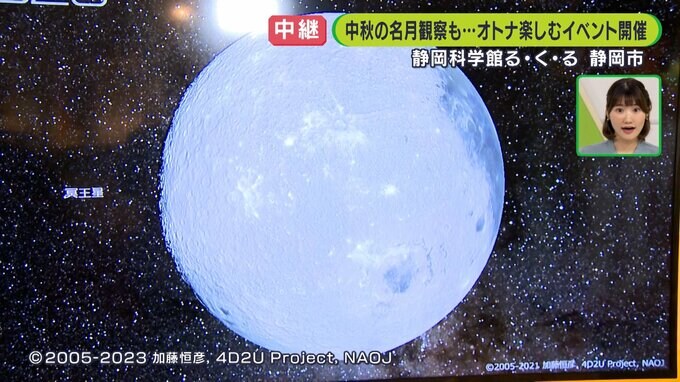 特別に用意された月のプロジェクションマッピング。現在のお月様ではないのですが、とても迫力のある立体的な月をじっくり観察することができます。