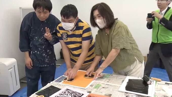 また講演会の後に開かれたワークショップでは、嘉成さんの原木版画を使った製作体験も行われました。