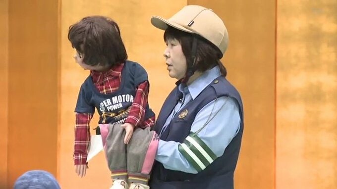 暗い道の多い周防大島では反射材の着用や夜間の、不要不急の外出を控えるよう腹話術人形と女性警察官がかけ合い呼びかけました。