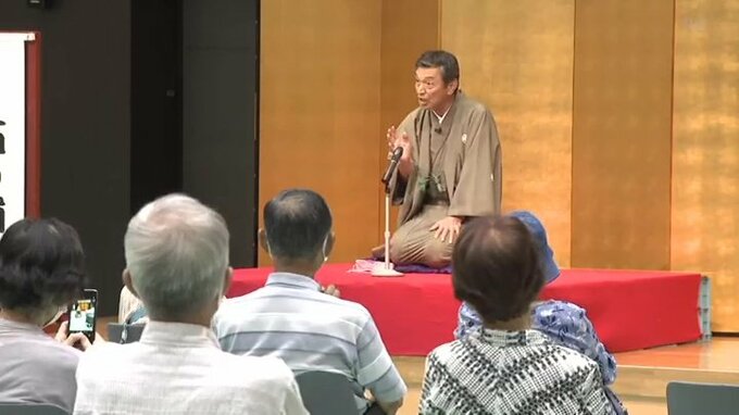 元中学校校長で落語家の由宇亭拓の輔さんが、詐欺グループが次々とウソを見破られる様子をコミカルに演じ、高齢者の被害が多発しているうそ電話詐欺への注意を呼びかけました。