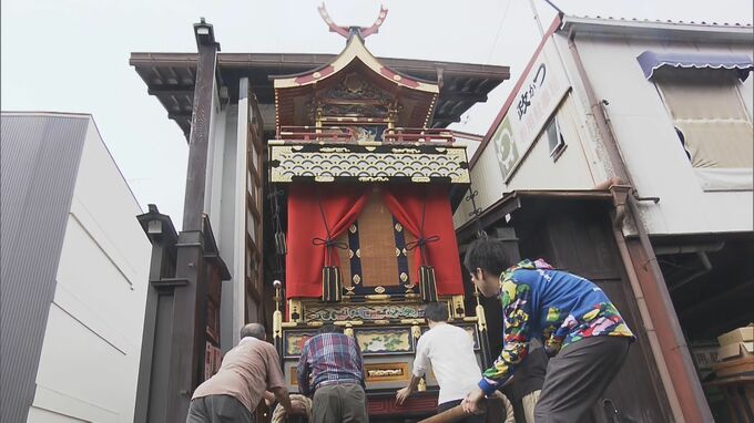 10月9日に始まる秋の高山祭に向け豪華絢爛な祭り屋台の飾り付けが行われました。飛騨地方の方言で「屋台やわい」と呼ばれるこの飾りつけは祭りで絢爛豪華な屋台を披露するための大切な作業です。1日は「布袋台」…
