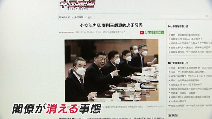 富坂聰・拓殖大学教授 「出世した人物でもあっという間に消えてしまう。かなり厳しいことが背後にあるのではないか。お金の問題、、外国との問題、特に一番敏感になっているのはアメリカとの情報漏洩。スパイの摘発とかものすごく増えているので」