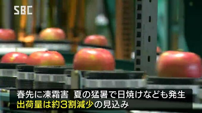 今シーズンは、春先の寒さや霜の被害に加え、夏の猛暑で、リンゴの日焼けなども発生し、出荷量は例年より3割ほど減少する見込みです。