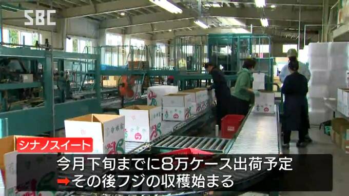 シナノスイートは、全国に向けて、10月下旬までにおよそ8万ケースの出荷が計画されていて、その後は、主力品種のフジの収穫が始まります。