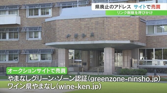 山梨県が廃止した2つのホームページアドレスがオークションサイトで売買されていたことがわかり、県は市町村などにリンクを削除するよう注意を呼び掛けています。