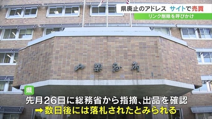 総務省からの指摘を受けて9月26日に県が確認したところ、2つのドメイン名が出品されていて、数日後には落札されたと見られています。