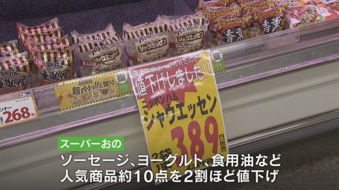 店側は家計の負担を減らそうとソーセージやヨーグルト、食用油など購入頻度が高い人気の商品およそ10点を2割ほど値下げしました。
