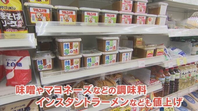 また味噌やマヨネーズなどの、調味料が値上がりしたほか、インスタントラーメンや、カップ麺も20円から50円値上がりしました。