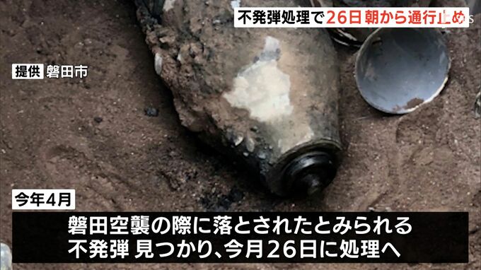 磐田市内で発見された不発弾について、磐田市は6月26日に処理を予定していて、当日は大規模な通行止めが実施されます。2022年4月、磐田市で77年前の磐田空襲の際に落とされたとみられる不発弾が見つかり、市は6月2…