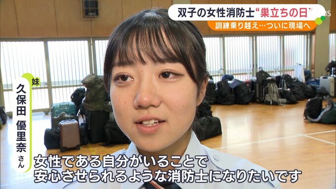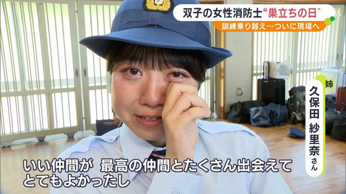 静岡県沼津市など4市3町が管轄の駿東伊豆消防本部の新人消防士久保田紗里奈さんと双子の妹の優里奈さん。消防学校での新人教育を終え、巣立ちの日を迎えました。