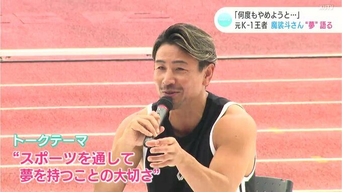 1日、高知競輪場で開かれたイベント「KJC MAX FES(ケージェーシー・マックス・フェス)」は高知青年会議所の創立70周年を記念した事業の一環として開催されました。イベントでは、K―1で世界王者にも輝いた元キックボクサーの魔裟斗さんが登場し、「スポーツを通して夢を持つことの大切さ」をテーマにトークショーが行われました。魔裟斗さんは、子どもたちにこれまでの経験から、スポーツの楽しさや継続することの大切さを語りました。