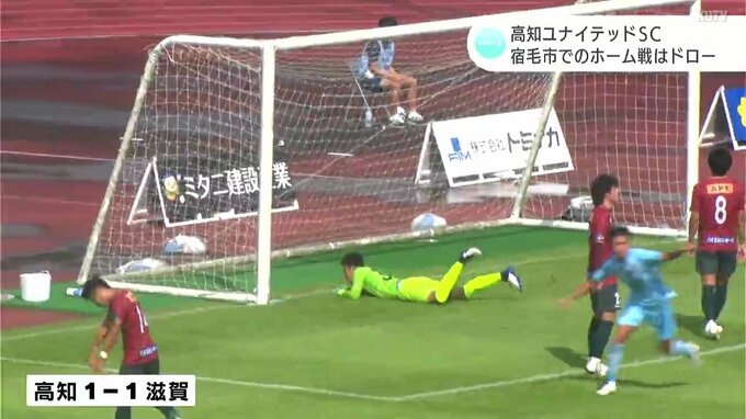 サッカーJFL高知ユナイテッドSCが1日、高知県宿毛市で「レイラック滋賀FC」と対戦し、1対1の引き分けに終わりました。