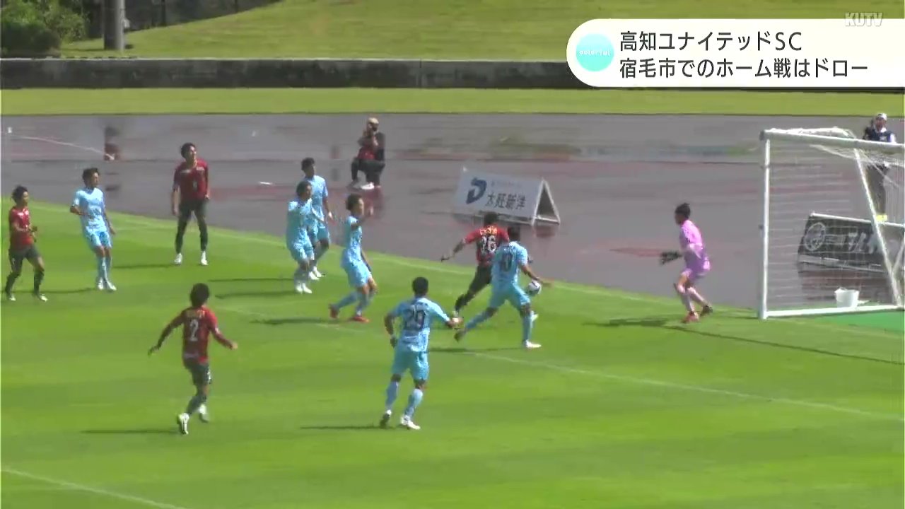 サッカーJFL高知ユナイテッドSCが1日、高知県宿毛市で「レイラック滋賀FC」と対戦し、1対1の引き分けに終わりました。