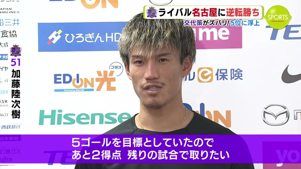 ゴールの後には自前のマスクでパフォーマンスも。途中交代の選手が躍動し、劇的な逆転勝利を収めたサンフレッチェ。相性の悪い名古屋から勝ち点3を奪い、順位も5位に浮上です。
