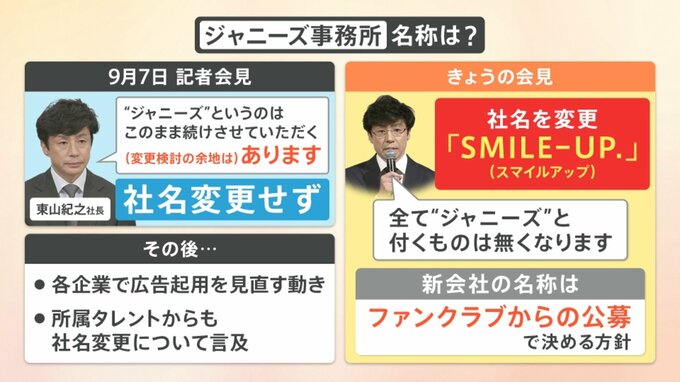 東山さんから「ジャニーズという痕跡をなくす」という言葉もありましたが、ジャニーズ事務所は社名の変更を発表しました。