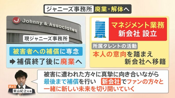 現在のジャニーズ事務所は、被害者への補償に専念します。