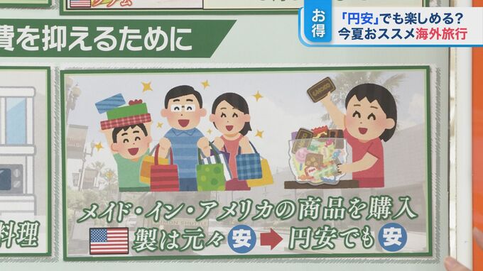 グアム旅行で買い物する際は、自国で作っている“メイド・イン・アメリカ”の商品を購入すると、アメリカ製は元々安いので円安でも影響が少ないということです。