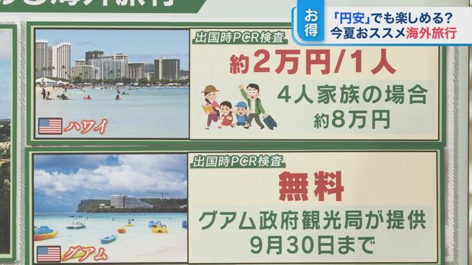今の時期、旅行につきもののPCR検査。日本に入国する前にPCR検査が必要ですが、例えばハワイでは、ハワイを出国する時のPCR検査は1人約2万円。家族4人で行った場合8万円かかります。これがグアムだと、なんと今は無料。グアムの政府観光局が9月30日まで無料で提供していて、PCR検査代だけでもハワイと比較すると8万円浮くということなんです。