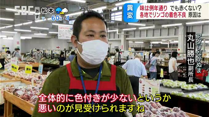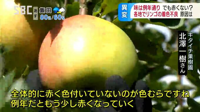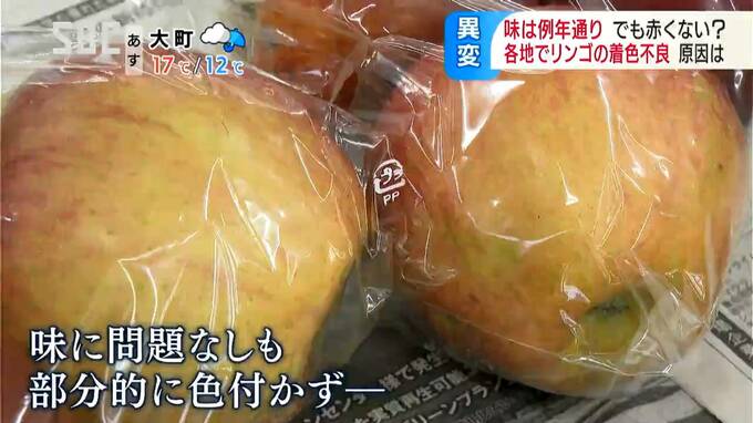 収穫の時期を迎えているリンゴですが、今年は、赤く色付かないという異変が、長野県内各地で起きています。