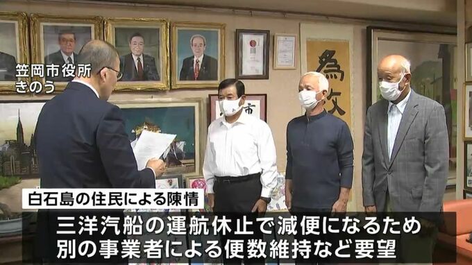 陳情を受けた笠岡市は北木島航路を運航する事業者と協議し、12月31日から1日5便、白石島を経由する意向を確認したと島の住民の代表に伝えました。