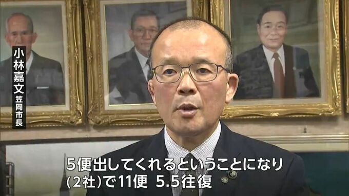 (小林嘉文笠岡市長)「5便出してくれるということになりまして(2社で)11便、5.5往復、何とか確保できてよかったなと思っています」