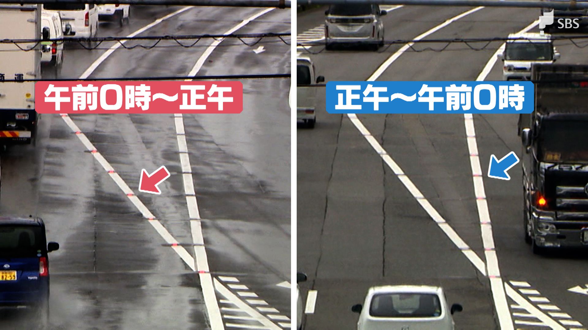 「いま、標識が動き出しました。標識の位置が変わり、ここから2車線通行と標識が変わりました。そして、中央線の位置が変わりました」