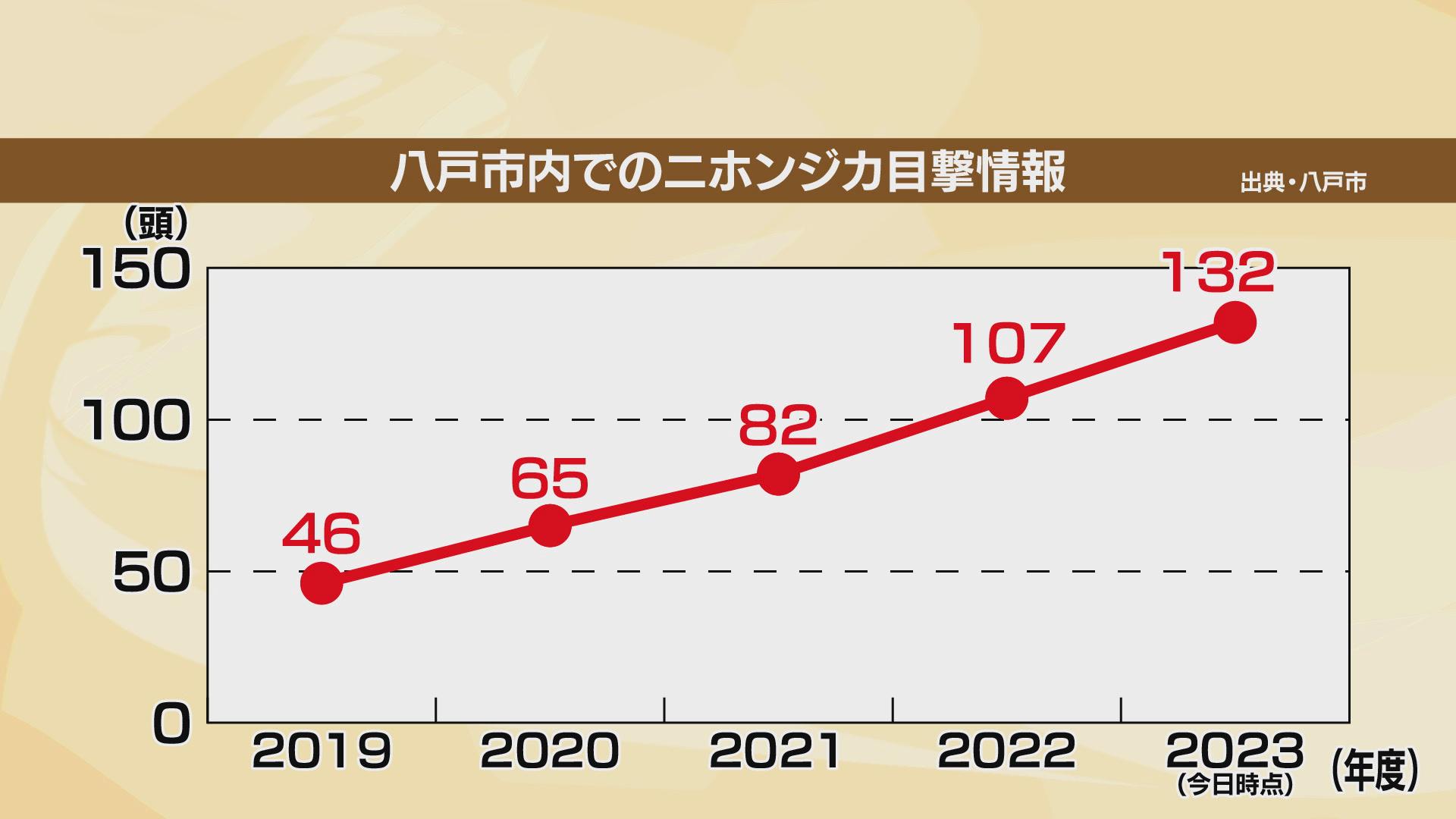 青森県では100年以上前にニホンジカが絶滅し、生息地の北限は岩手県とされてきました。しかし近年は県内で目撃数が増えていて、2023年に八戸市では4日までに132件目撃され4年前の約3倍に。列車や車との衝突事故も毎年発生しています。