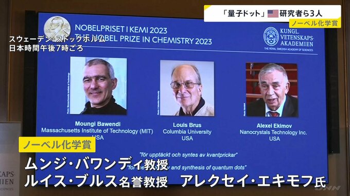 今年のノーベル化学賞に、新たなディスプレイへの応用などが期待されている「量子ドット」と呼ばれる、きわめて小さい粒子を発見したアメリカの研究者ら3人が選ばれました。スウェーデン王立科学アカデミーはきょ…