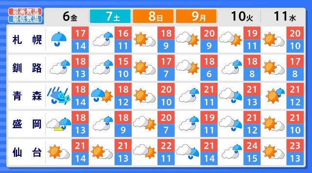 気象台によりますと5日は低気圧が発達しながら北海道付近へ進み、前線が東北地方を通過すると見られ、その後6日にかけては西高東低の気圧配置が強まる見込みです。