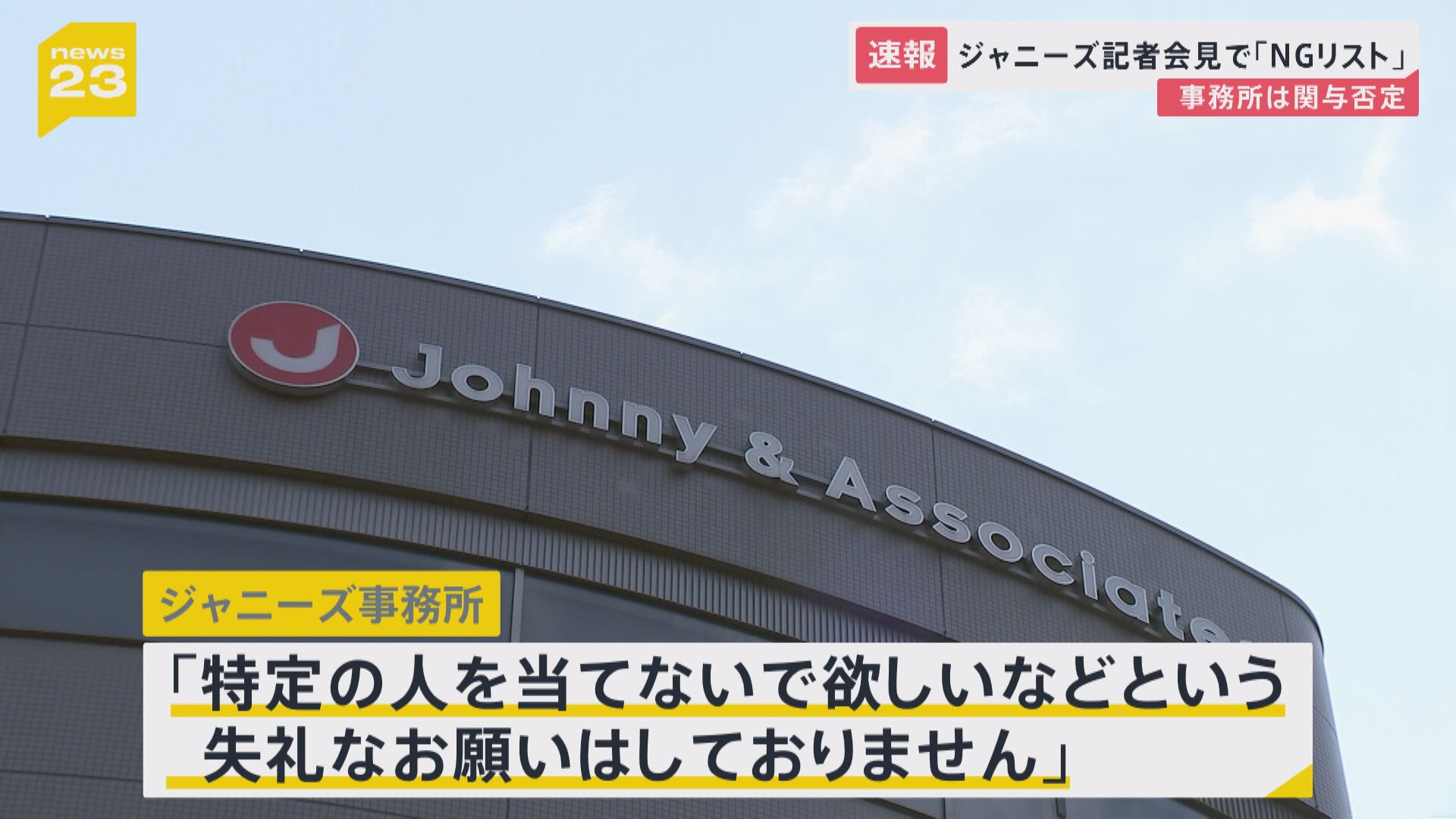 「NGリストはPR会社が作成したもので、事務所は関与していない」とするジャニーズ事務所。