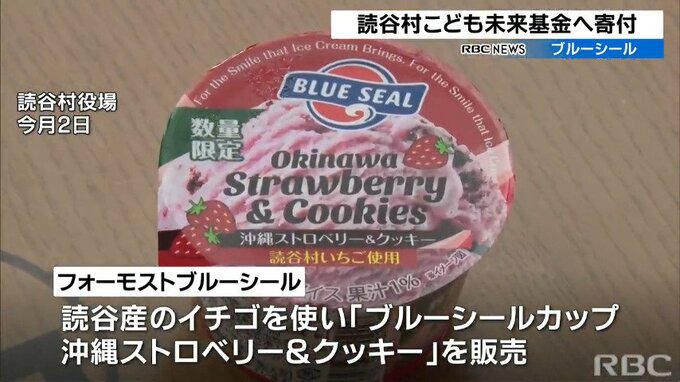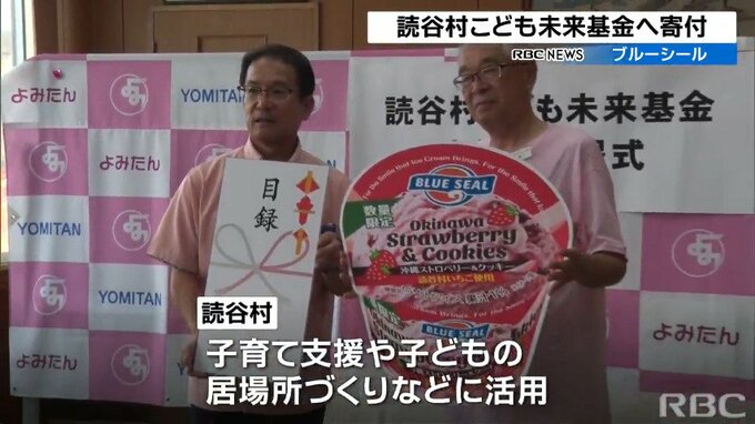 子育て支援などに役立ててもらおうと県内のアイスクリームメーカー、フォーモストブルーシールが商品の売り上げの一部を読谷村の『こども未来基金』に寄付しました。