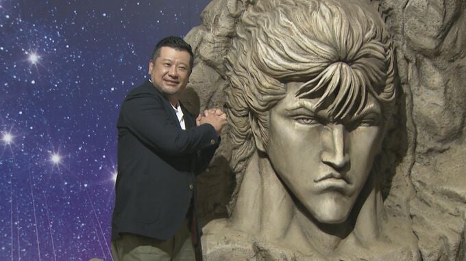 ケンドーコバヤシさんは、作品の人気キャラクターである“ラオウ”像と共に名ゼリフ「我が生涯に一片の悔いなし」のポーズで写真撮影に応じるなどノリノリ。“一ファン一読者としてこの場に登壇させていただくことを本当に光栄に思っております。今日は胸を張ってファンです!とアピールしたかったんですけど、(展示室の)入口で「死兆星」が、さんさんと輝いているのが見えまして。オカンに電話したいくらいの気持ちです”と、展示されている作品モチーフに興奮気味でトークしました。